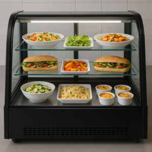 La vitrine réfrigérée joue un double rôle : elle garantit la conservation de vos produits à la bonne température tout en assurant une mise en avant attractive de votre offre. Selon votre concept, vous pourrez opter pour des vitrines comptoir (service assisté), des vitrines self-service en libre accès, des meubles à boissons, des vitrines à desserts ou à tapas, voire des vitrines murales pour maximiser la surface d’exposition. Pour les glaces et produits surgelés, un congélateur coffre ou armoire complète l’installation pour maintenir les produits en température négative.