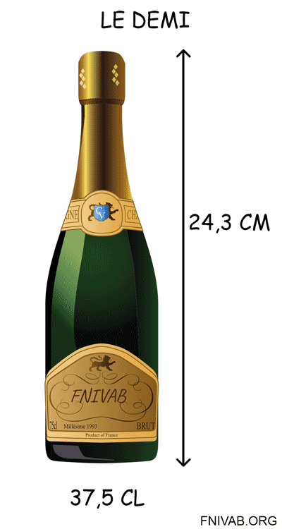La demi bouteille de champagne contient 37,5 centilitres et permet de remplir 2 verres. On l’appelle aussi parfois la fillette.