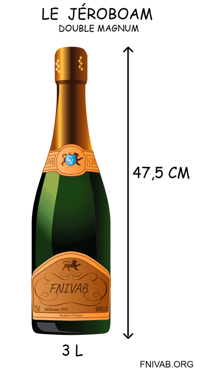 Appelé aussi double Magnum, le Jéroboam contient 3 litres soit 2 magnums ou 24 verres. C’est Pierre Mitchel en 1725, un industriel bordelais, qui a nommé cette bouteille Jéroboam en référence à deux rois d’Israël qui ont vécu 1000 ans avant JC. Il faut préciser qu’un Jéroboam de vin contient 5 litres.